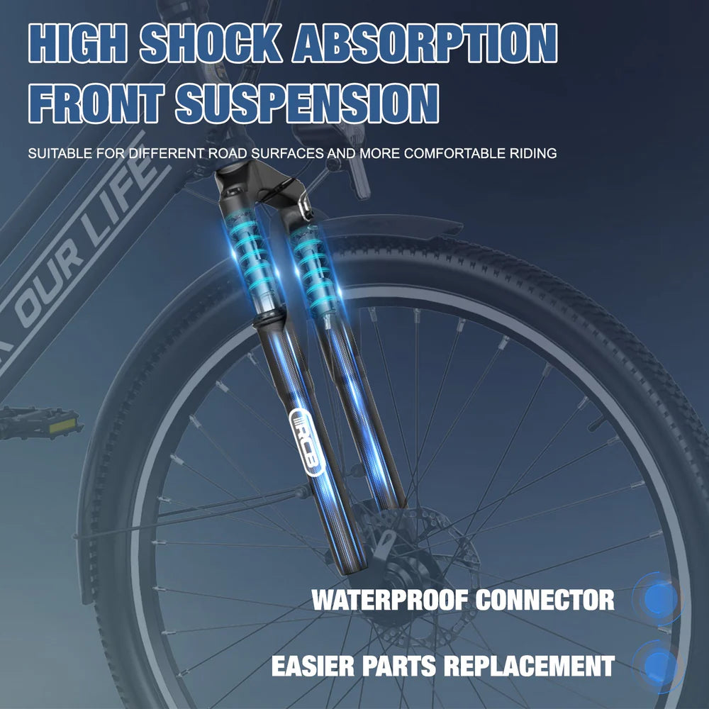 250W Powerful Motor】This electric bike is equipped with a powerful and stable250W motor that delivers reliable and consistent power for your daily rides. Its maximum speed of approximately 15.6 miles per hour, makes it ideal for commuting and camping.- 【Professional 26"*2.35" Tires】RCB electric bicycle is specially equipped with super-strong 2.35 professional fat tires, which are wear-resistant and anti-puncture. You can ride freely in the mountains, in the city, and explore the nature. You can do it enjoy shuttle in snow, sand and other places.